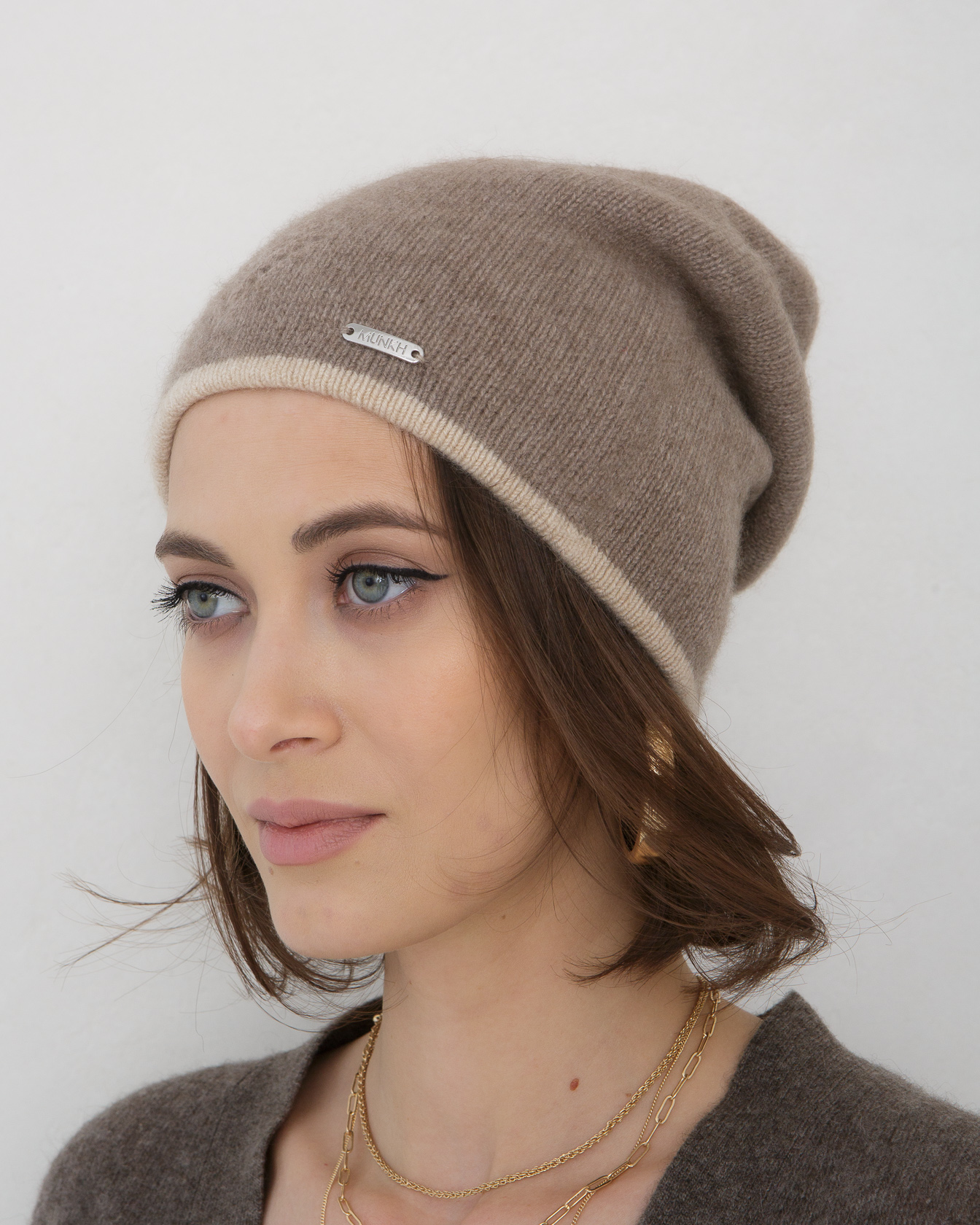 Шапка мягко прилегает к голове, обеспечивая комфортную посадку без давления. Удлинённый силуэт позволяет носить модель с лёгким напуском. Универсальный размер подходит большинству типов лица.