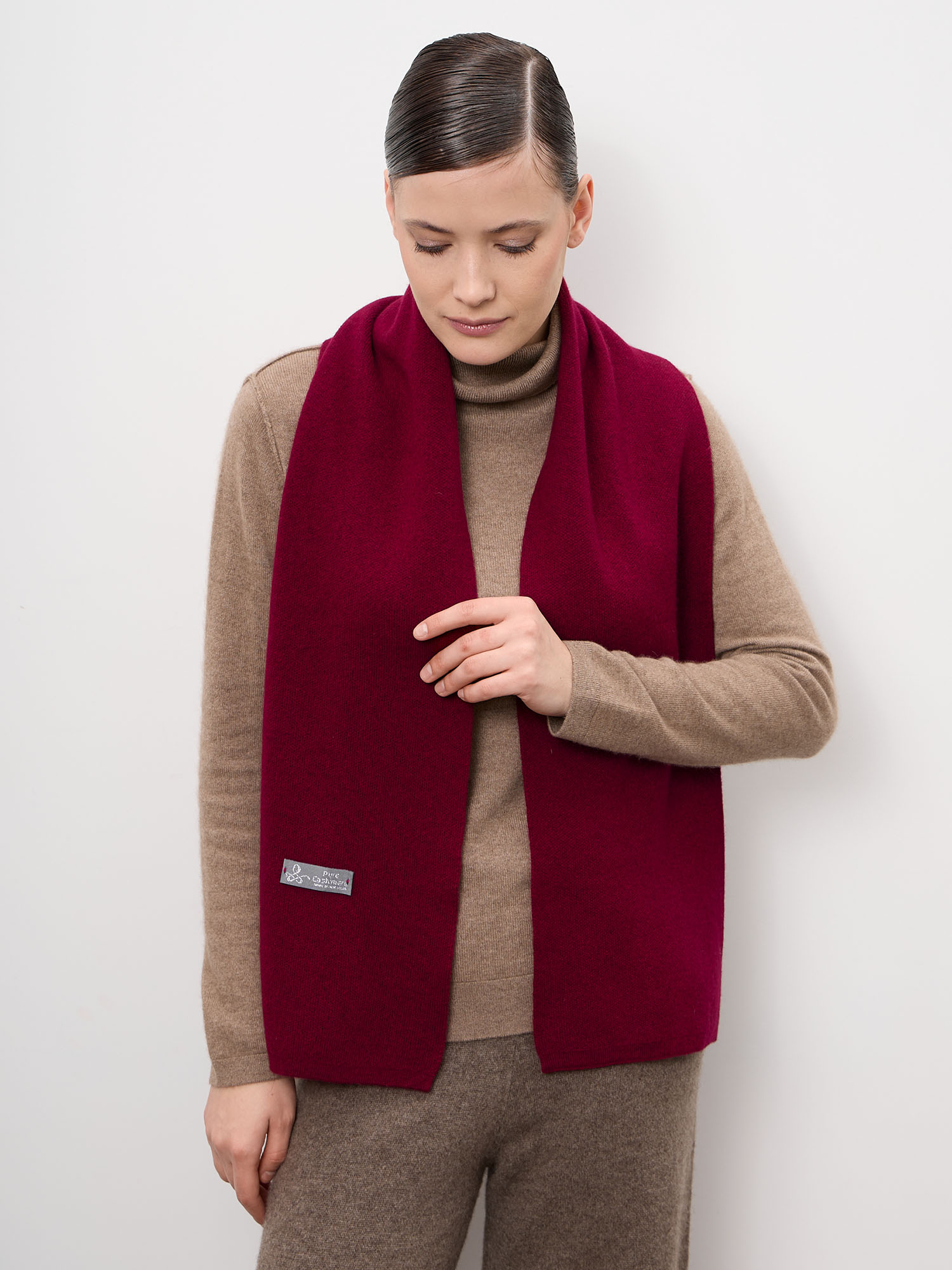 Кашемировый шарф в насыщенном бордовом оттенке — выразительный аксессуар, который добавляет образу элегантность и глубину. Мягкое и лёгкое полотно деликатно драпируется, создавая аккуратный силуэт и ощущение уюта. Благородный цвет и минималистичный дизайн делают шарф универсальным дополнением как повседневных, так и более изысканных образов.