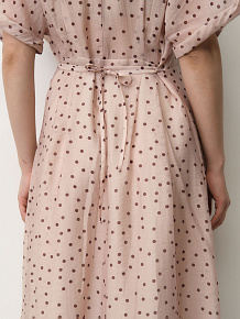 Свободный силуэт с акцентом на талии и длиной миди. Легкие рукава и плавные линии создают воздушный и элегантный образ.