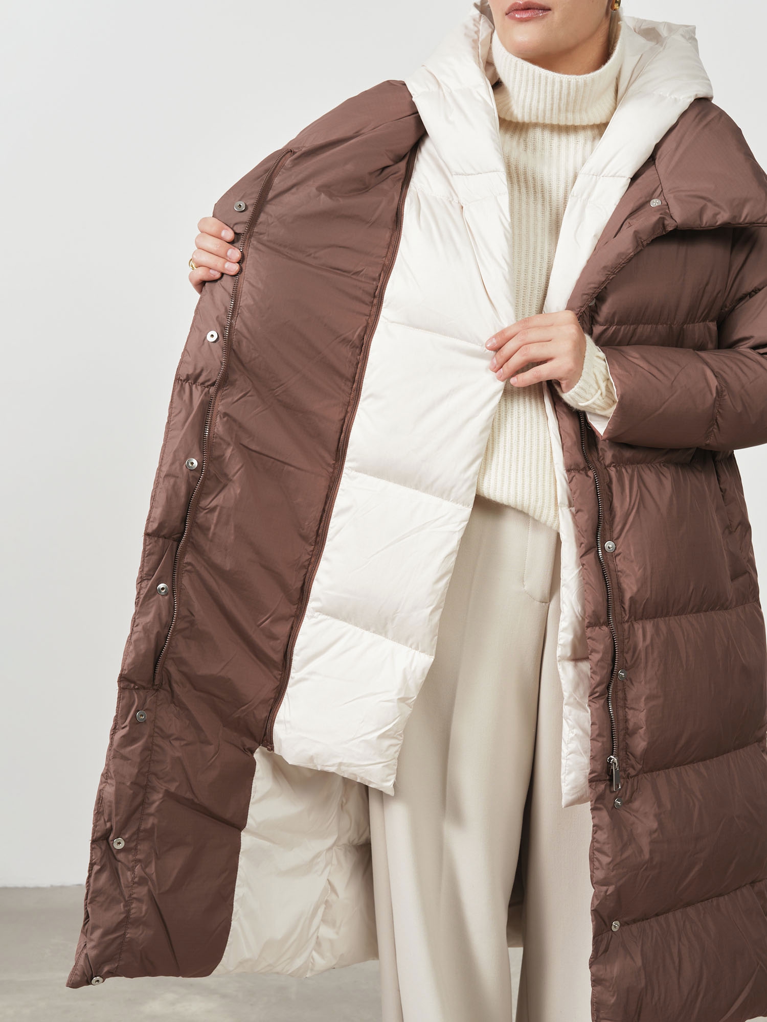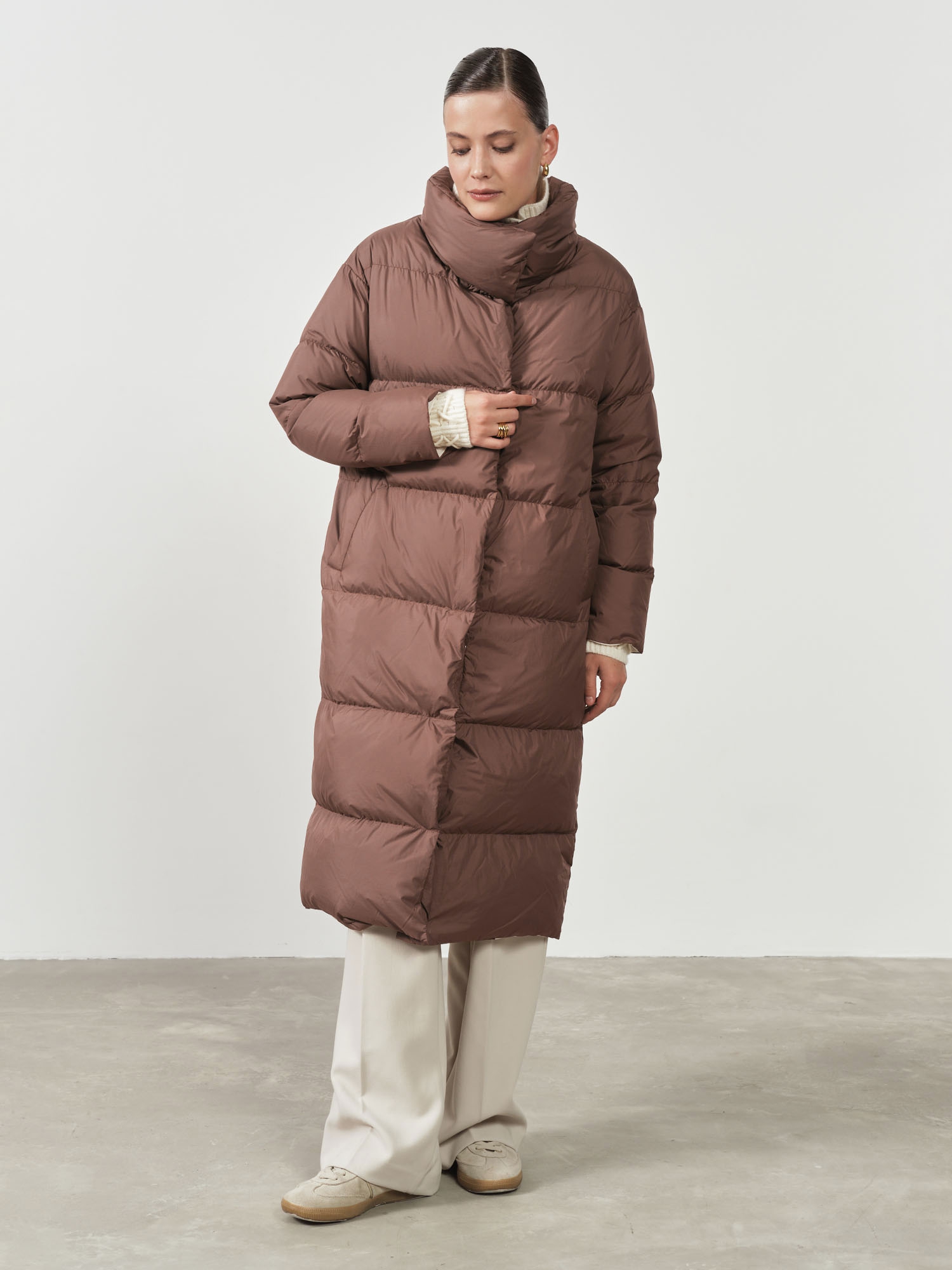 длинный пуховик с карманами на молнии